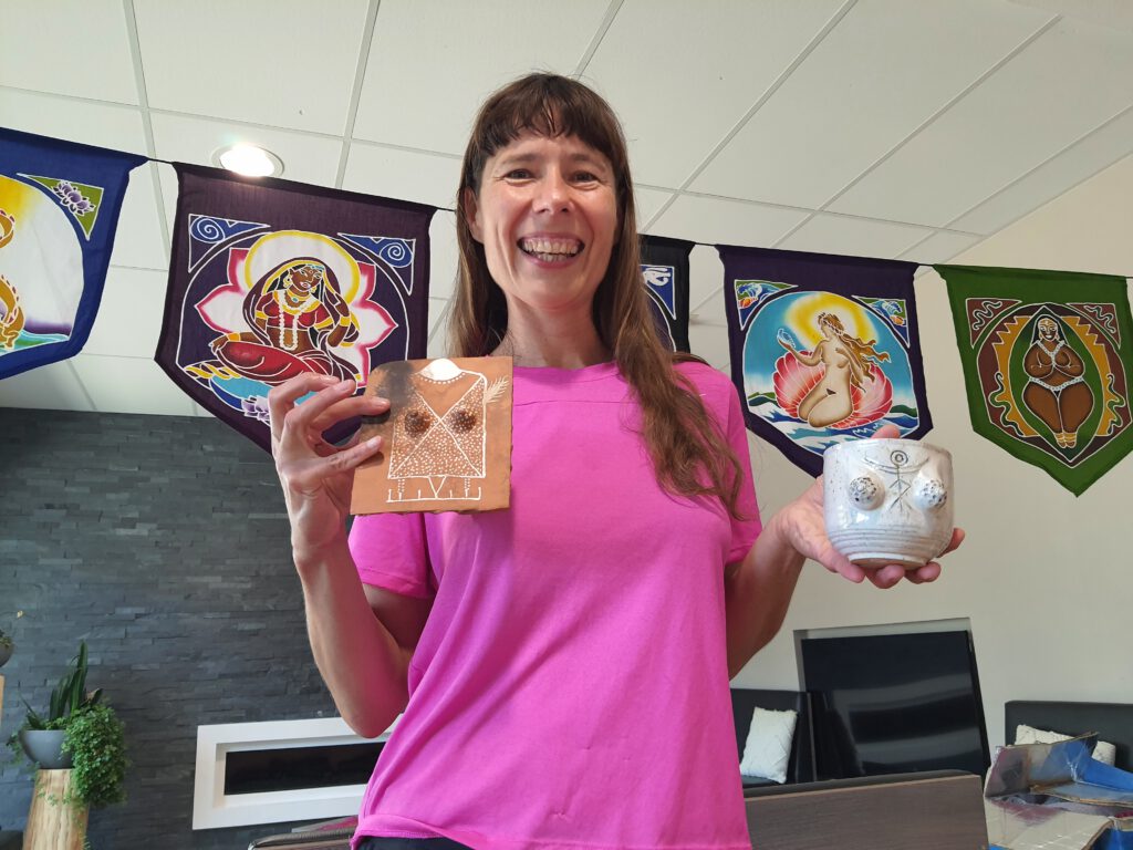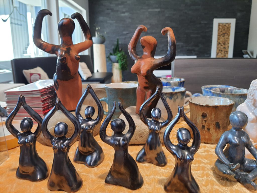 An meinem Stand findest du mit Liebe angefertigte Schmuckstücke voller Symbolkraft: Göttinnen-Anhänger, Altargöttinnen, Vulvinas und Yonihearts, die Frauen in ihrer Kraft, Schönheit und Verbundenheit stärken.