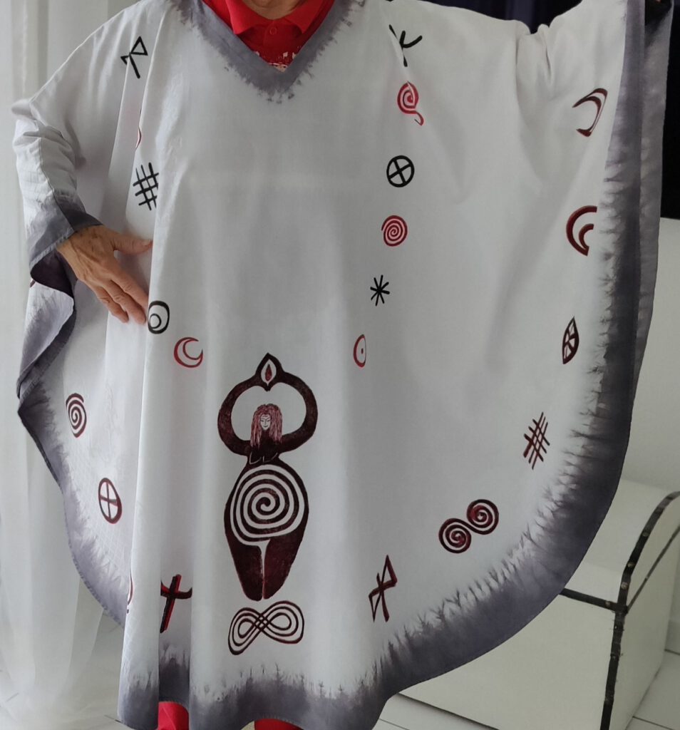 Mit diesen „Modeln“ bedrucke ich Textilien für Menschen und Räume. Es entstehen besondere Einzelstücke, wie Schals und Ritualkleidung, Tücher für Kreismitten und Wandschmuck, Fahnen, und Wimpelketten, Geschirrtücher und Schürzen, sowie Stofftaschen, Tischsets, u.a.m…. Homepage